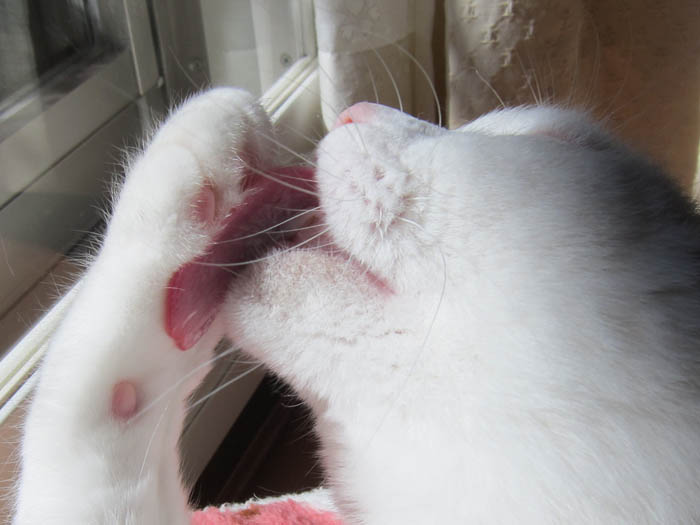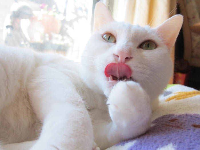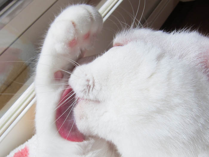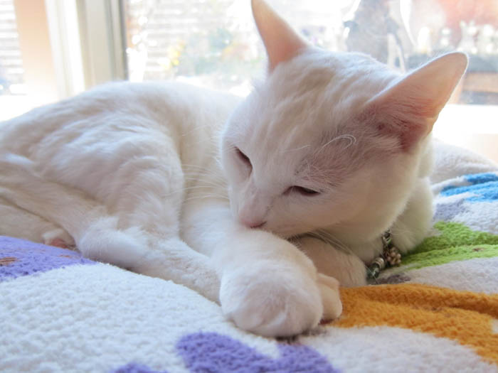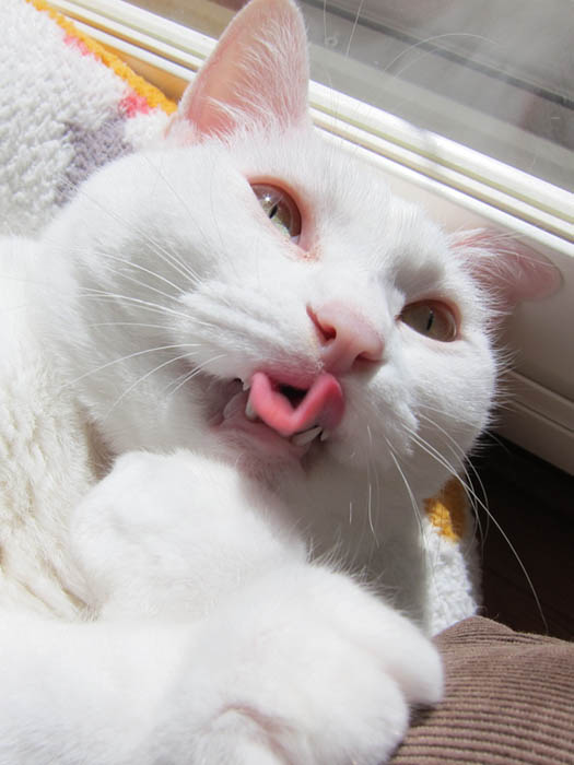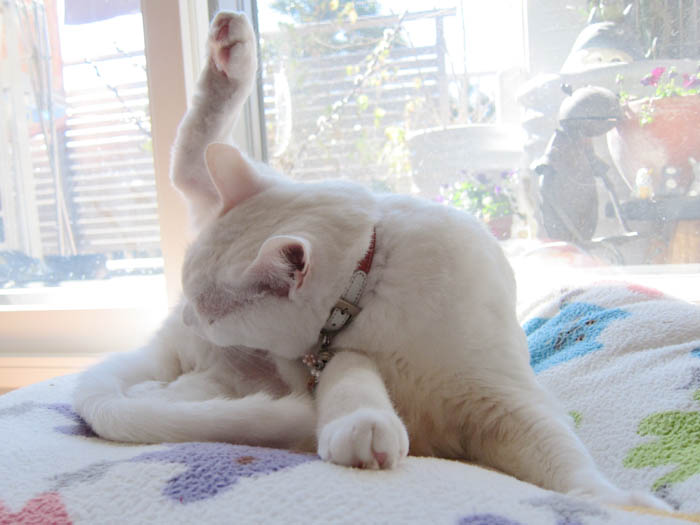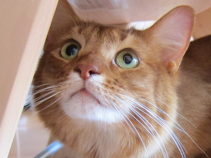 に気づくと、こちらを見上げてくれましたが、顔がつぶれ気味になっています(笑)。
