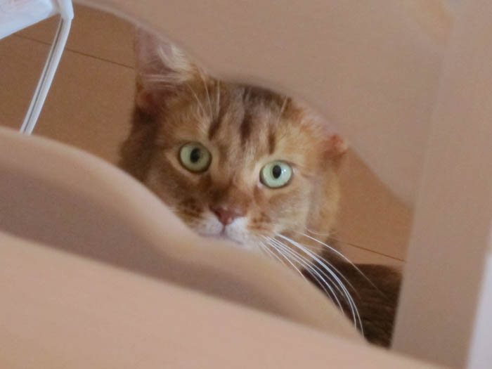 2010年 2/6(土) 539日目のぴっち♀とぽっけ♂ ~ドアと箱とファーと~ドア前で待機。同じ段ボールに別々に入った2匹が何故か同じポーズに。