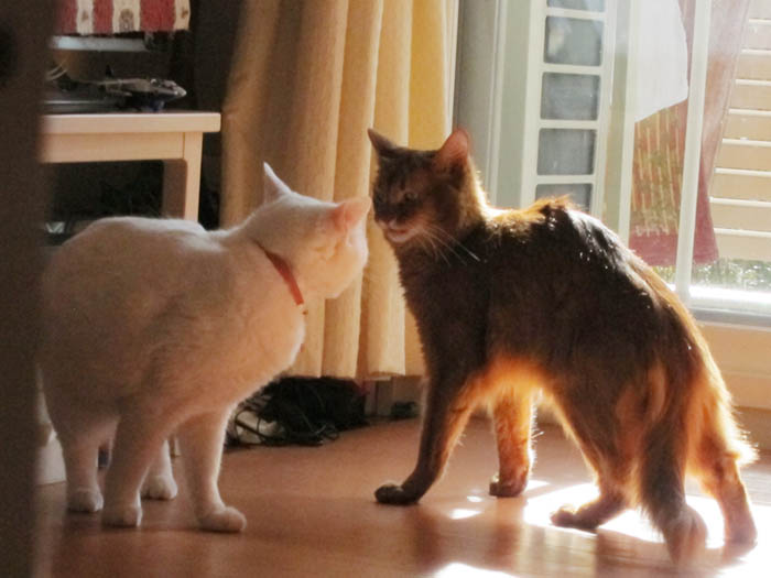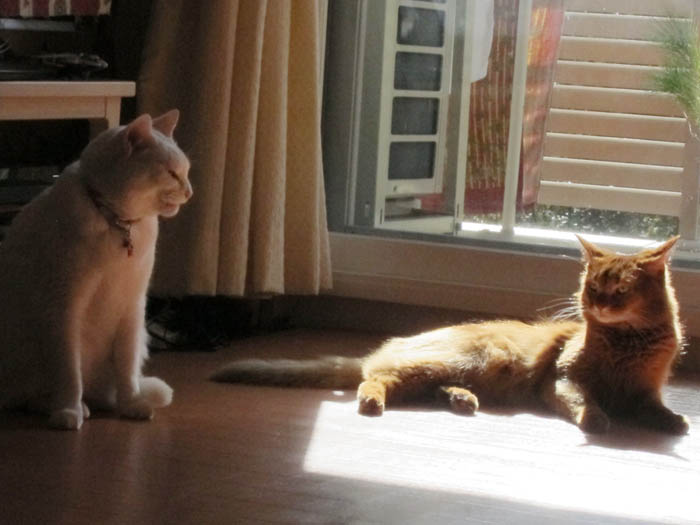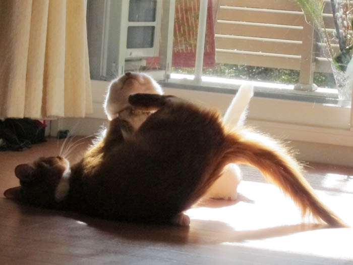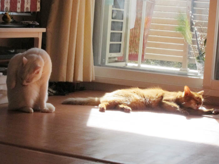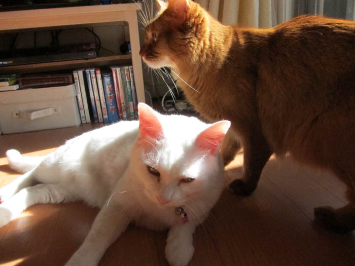 2011年 2/3(木) 901日目のぴっち♀とぽっけ♂ ~猫と節分と肉撒き~新規写真追加。節分は豆の代わりにお肉ジャーキーを撒いてみました。ゴハンをめぐって頭突き大作戦。