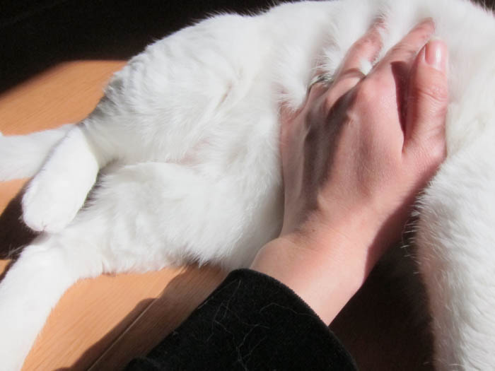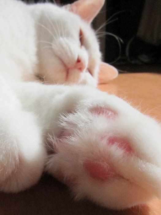 羽毛布団つきの膝の上に乗ってお昼寝します。