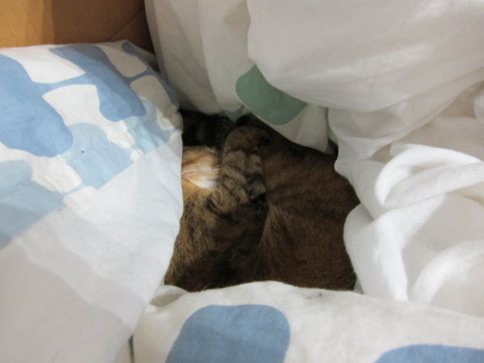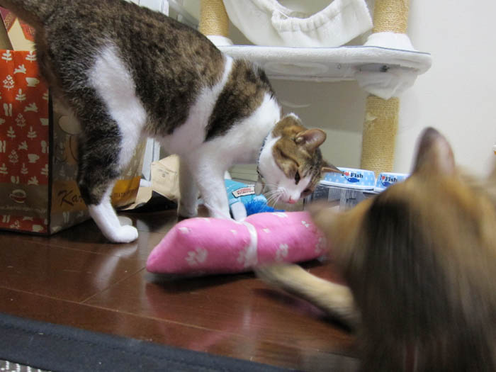 2010年 12/28(火) 864日目のぴっち♀とぽっけ♂ ~猫返しと段ボールでの攻防~新規写真・動画追加。乗られると困る所に猫返し。段ボール要塞での攻防動画。ぴっち♀を探せ!18。