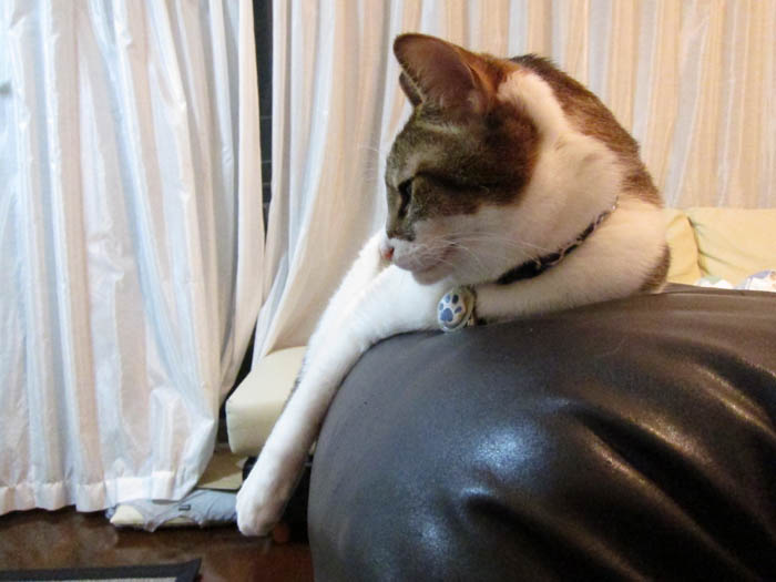 ソファーで眺めているぽっけ♂。