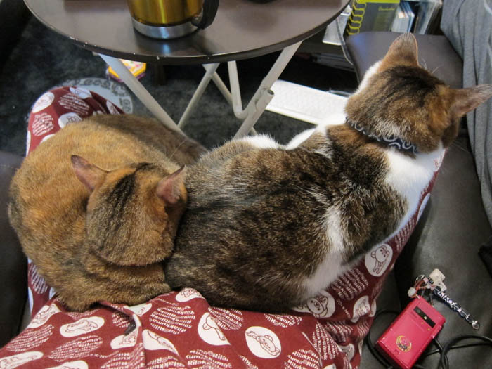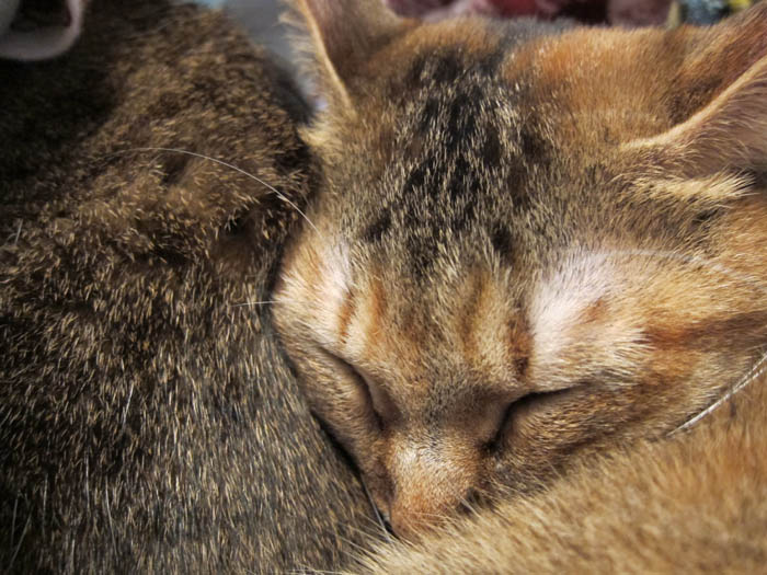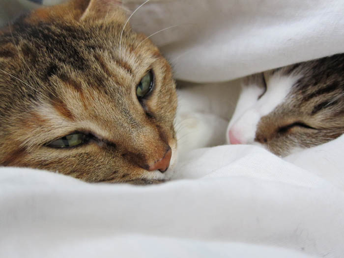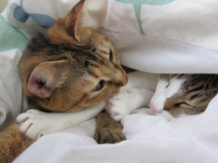 の気を引く術」ですが、やられっぱなしという訳ではないのです。新規写真追加。 陽の当たる窓際で寝そべる2匹。