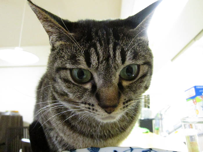 寝る前のゴハンを期待している視線が非常に痛いです。
