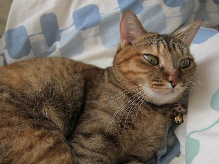 羽毛布団を占領しているぽっけ♂。