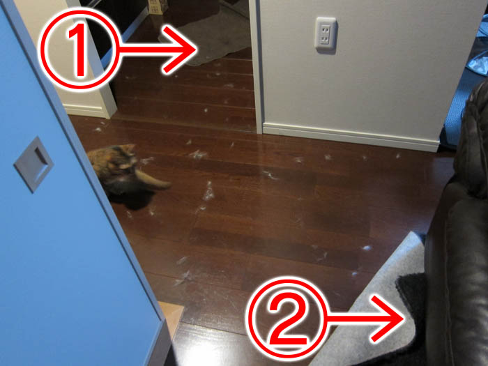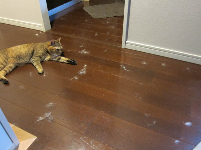 このドア前を中心に、お互いがむしりあった毛が