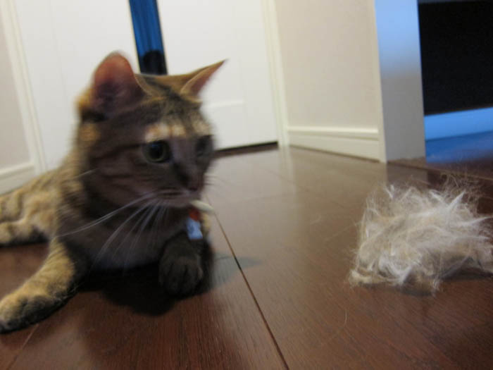 この毛はあえて丸めずに捨てました。