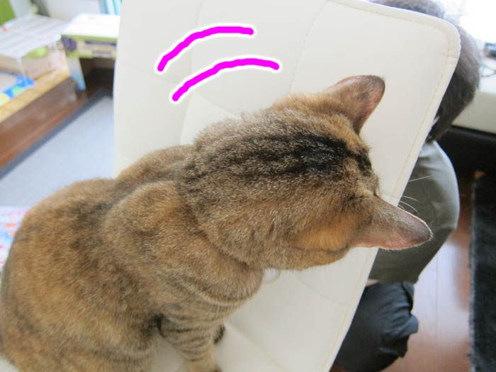 だけ股の間に落ちていますが、顎が乗っていれば基本気にしないぽっけ♂です。
